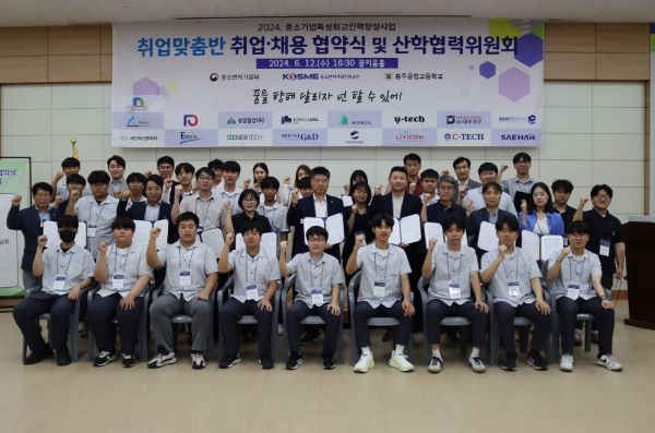 [참교육뉴스=이창훈 기자] 충주공업고등학교(교장 최진근)는 12일 오후, 중소기업 특성화고 인력양성사업 취업맞춤반 취업 채용 협약식을 가졌다.