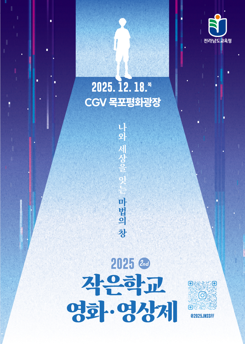 전라남도교육청(교육감 김대중)이 12월 18일부터 20일까지 목포 CGV 평화광장과 폰타나비치호텔, 목포시네마MM 등에서 ‘2025. 전라남도교육청 작은학교 영화‧영상제’를 연다.