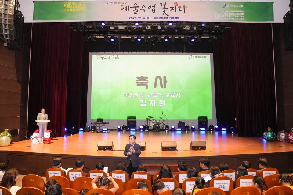 충남교육청(교육감 김지철)은 12월 4일, 홍주문화회관에서 농어촌 지역 학생들의 예술적 성장을 담아낸 ‘2025 농어촌 우리동네 예술학교 수업활동 발표회’를 성황리에 개최했다고 밝혔다.