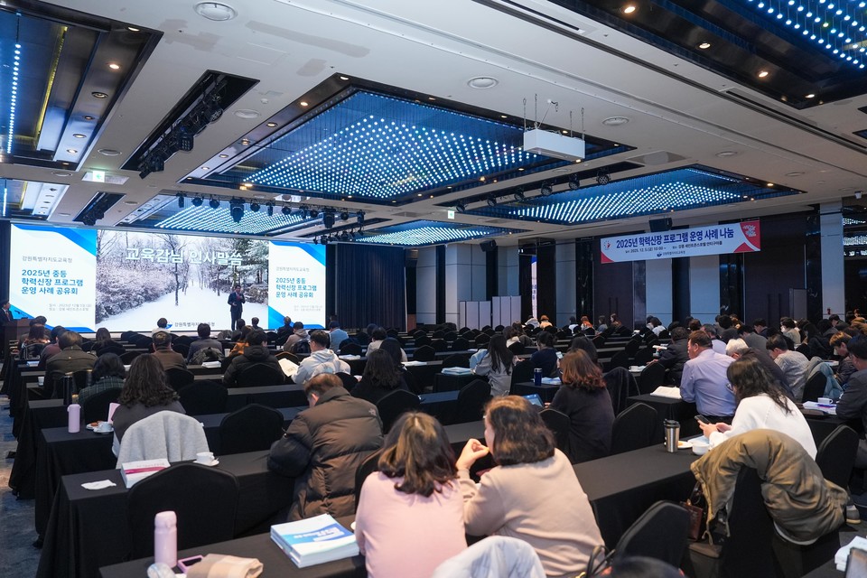 강원특별자치도교육청은 12월 5일 강릉 세인트존스호텔에서 도내 중·고등학교 교사 및 교감을 대상으로 ‘2025년 중등 학력신장 프로그램 운영 사례 나눔 연수’를 개최했다.