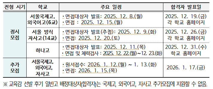 서울시교육청은 각 학교에 교육청에서 위촉한 면접전형위원을 파견하고, 면접전형 당일 현장점검을 실시하는 등 관리‧감독에 만전을 기하여 공정하고 투명한 입학전형이 이루어지도록 할 것이다.